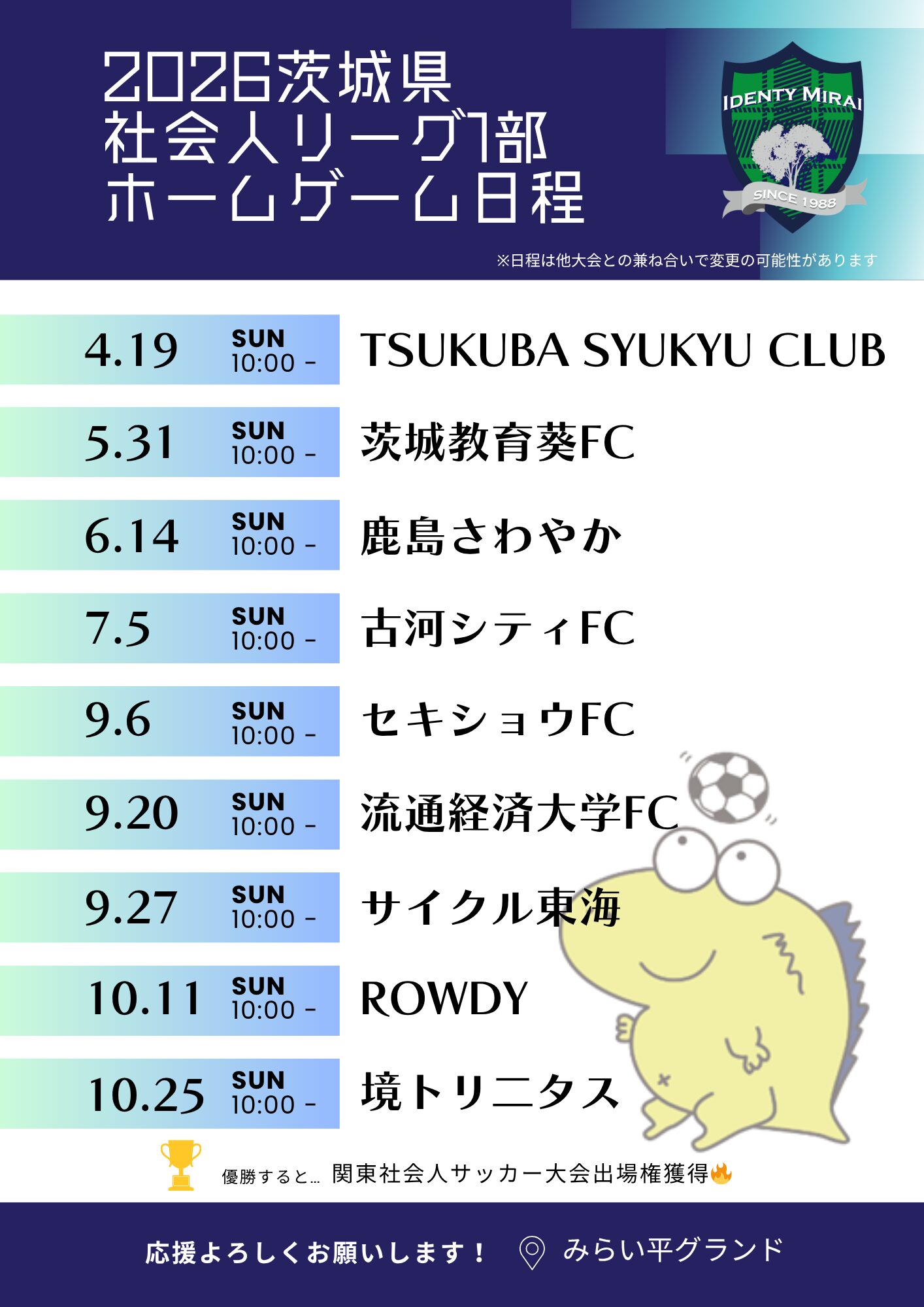 2026茨城県社会人リーグ1部ホームゲーム日程のお知らせ